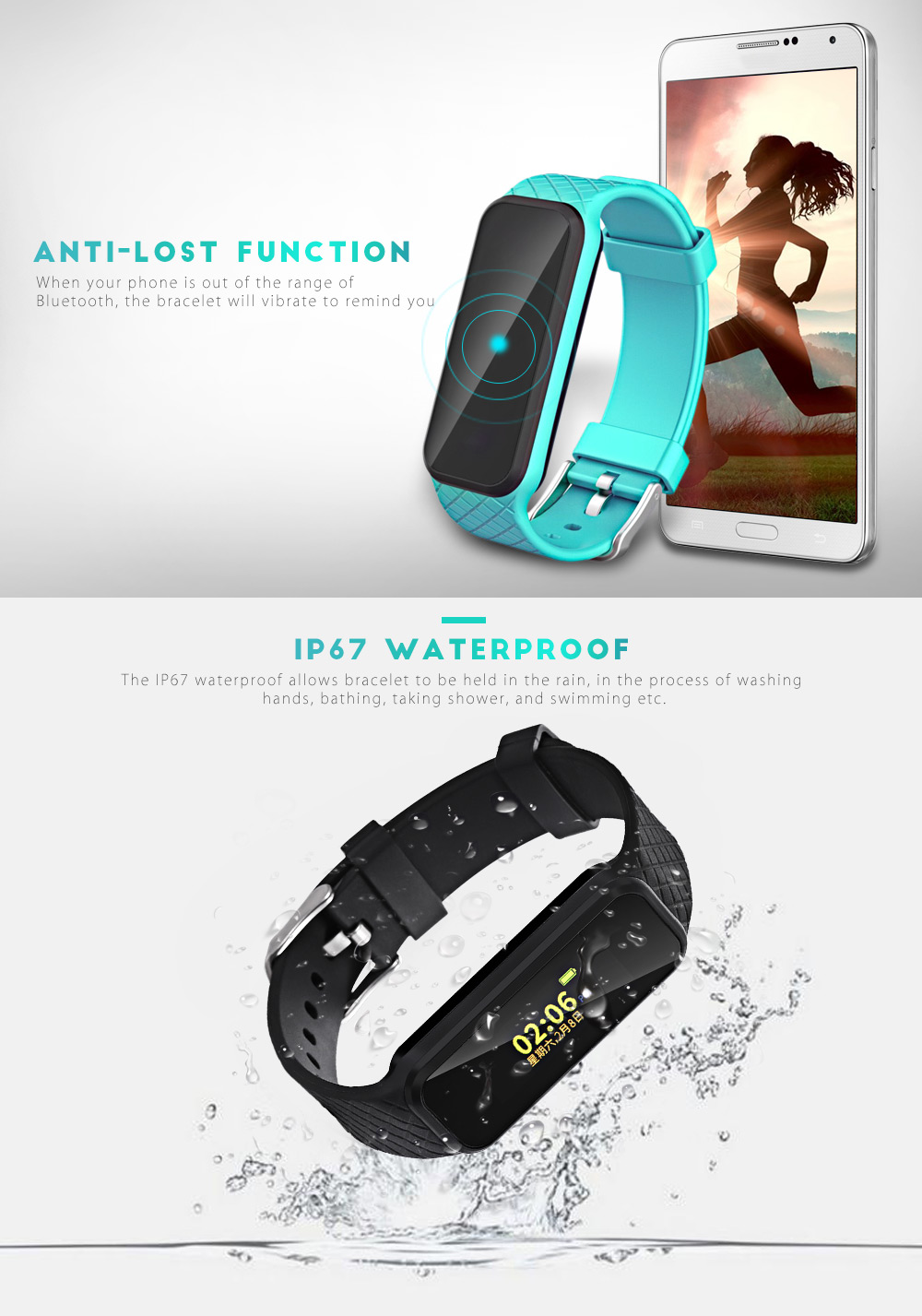 Функции: будильник, звонок напоминание, измерение калорий, дата, расстояние до объекта съемки, измерение частоты сердечных сокращений, уведомление о app, шагомер, сидячие напоминание, управления сном, SMS напоминание