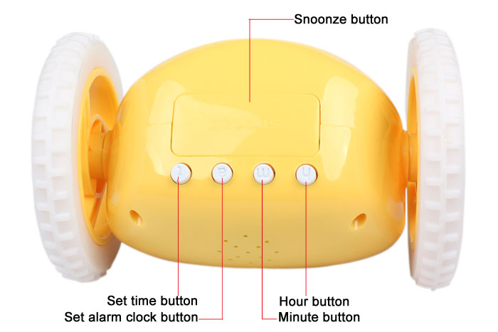 Будильник, убегающий от тебя, заставит проснуться любого. При всем желании продолжать спать с ним просто невозможно. Передвигающийся по квартире на колесиках повышенной проходимости будильник издает звуковые сигналы, заставляя тем самым подняться с постели и нажать кнопку выключения. Благодаря прорезиненному и прочному корпусу будильнику не страшны падения и удары. Он легко преодолевает препятствия в виде ковровых покрытий и порогов комнат. Натыкаясь на стены, прибор "убегает" в другие стороны. В будильнике предусмотрен режим отложенного звонка. Это значит, что "убегать" он начнет на последнем повторе цикла.