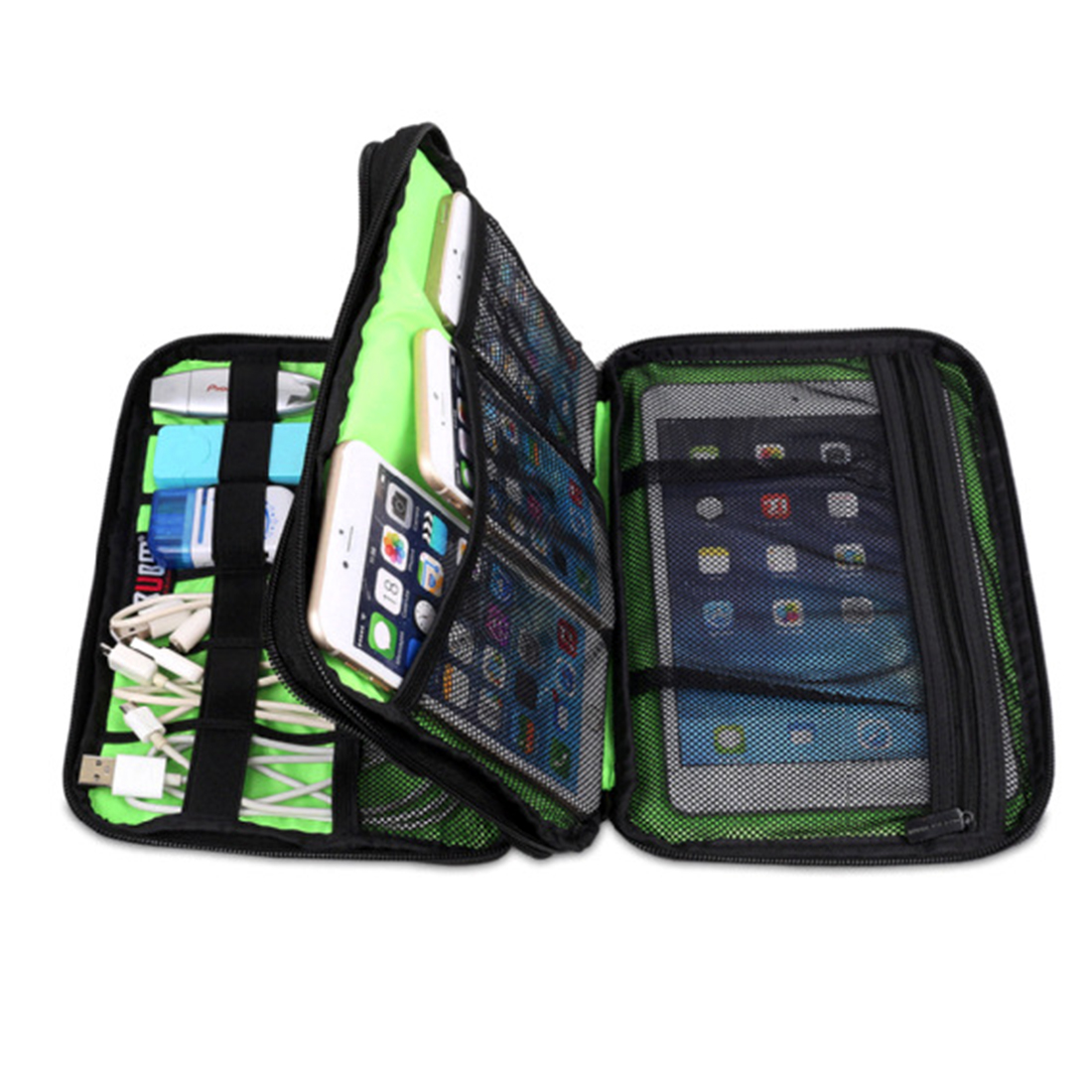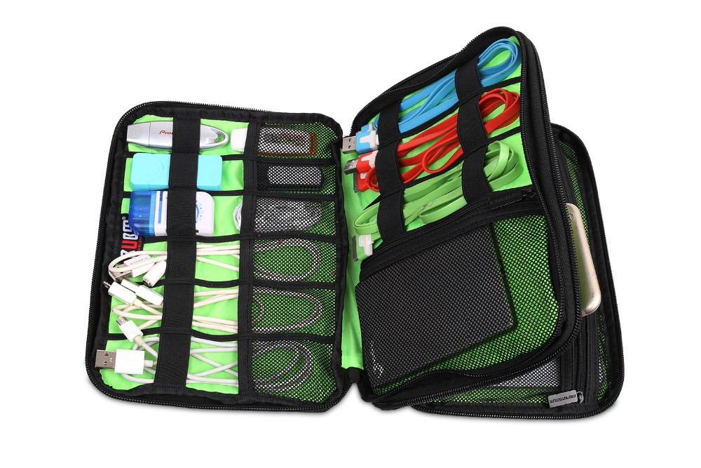 Сумка-органайзер для удобного хранения и перевозки гаджетов и аксессуаров – это настоящая находка для тех, кто любит порядок. Теперь вы можете сложить все провода и аксессуары в одно место. Размер сумки позволяет вместить туда планшет габаритами до 25 см х 15 см. В нее с легкостью поместится смартфон, а также множество различных кабелей. Разнообразные внутренние кармашки позволят разместить каждый предмет в своей ячейке. Такую сумку крайне удобно брать с собой в дорогу. В ней поместится все, что вам нужно при пользовании вашими электронными устройствами. При своих компактных габаритах сумка весьма вместительна. Застежка на молнии обеспечивает надежную фиксацию створок сумки и не позволяет им раскрыться. Сумка-органайзер для удобного хранения и перевозки гаджетов и аксессуаров – это прекрасный способ взять с собой все, что вам нужно или просто избежать беспорядка при хранении аксессуаров.