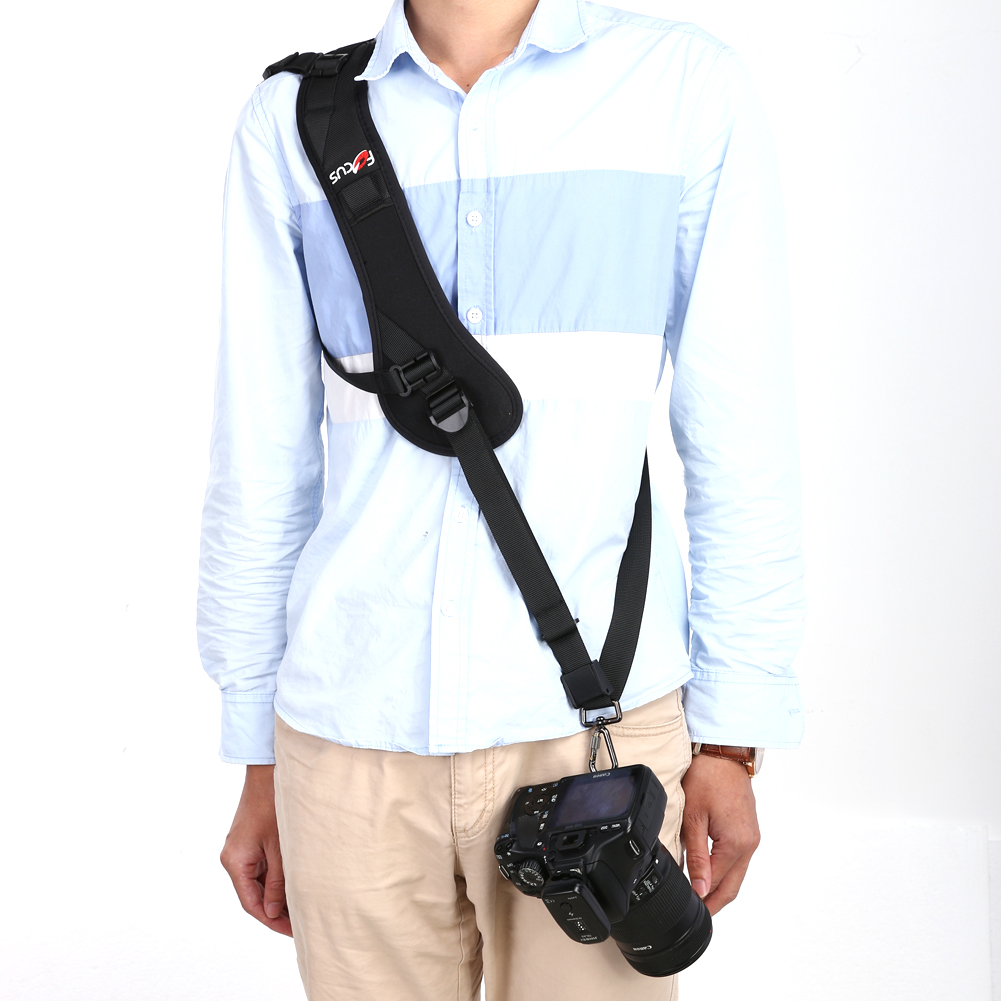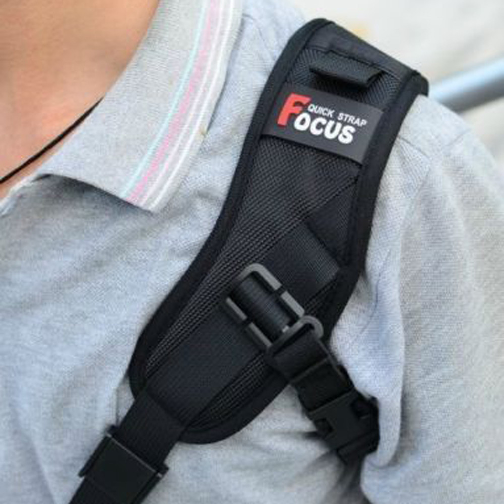 Черный плечевой ремень предназначен для быстрого доступа к фотоаппарату. Он позволяет удобно размещать фотоаппарат у бедра или поясницы, высота размещения регулируется, беспрепятственно поднимать его к глазам и опускать обратно. Черный плечевой ремень крепится к фотоаппарату через специальный металлический крепеж который идет в комплекте.