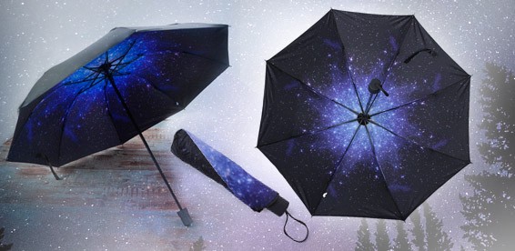 Оригинальный зонт «Звездное небо» прекрасно подойдет как подарок. Двухслойный зонт с непрозрачной внешней частью купола и с рисунком внутри.