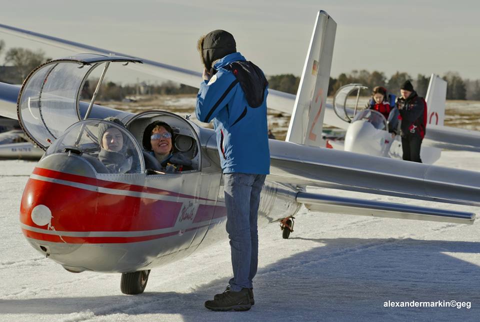 - Обладателя сертификата встречают на аэродроме, инструктируют, надевают парашют и помогают занять место в кабине планера.