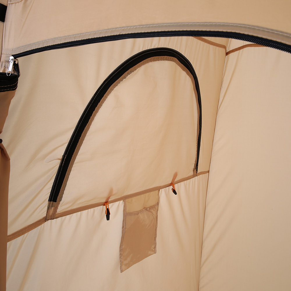 Палатка кабинка для одного человека, используется в качестве раздевалки, туалета, душевой кабины. Легко устанавливается, в собранном виде занимает минимум места. Палатка имеет два боковых окна.