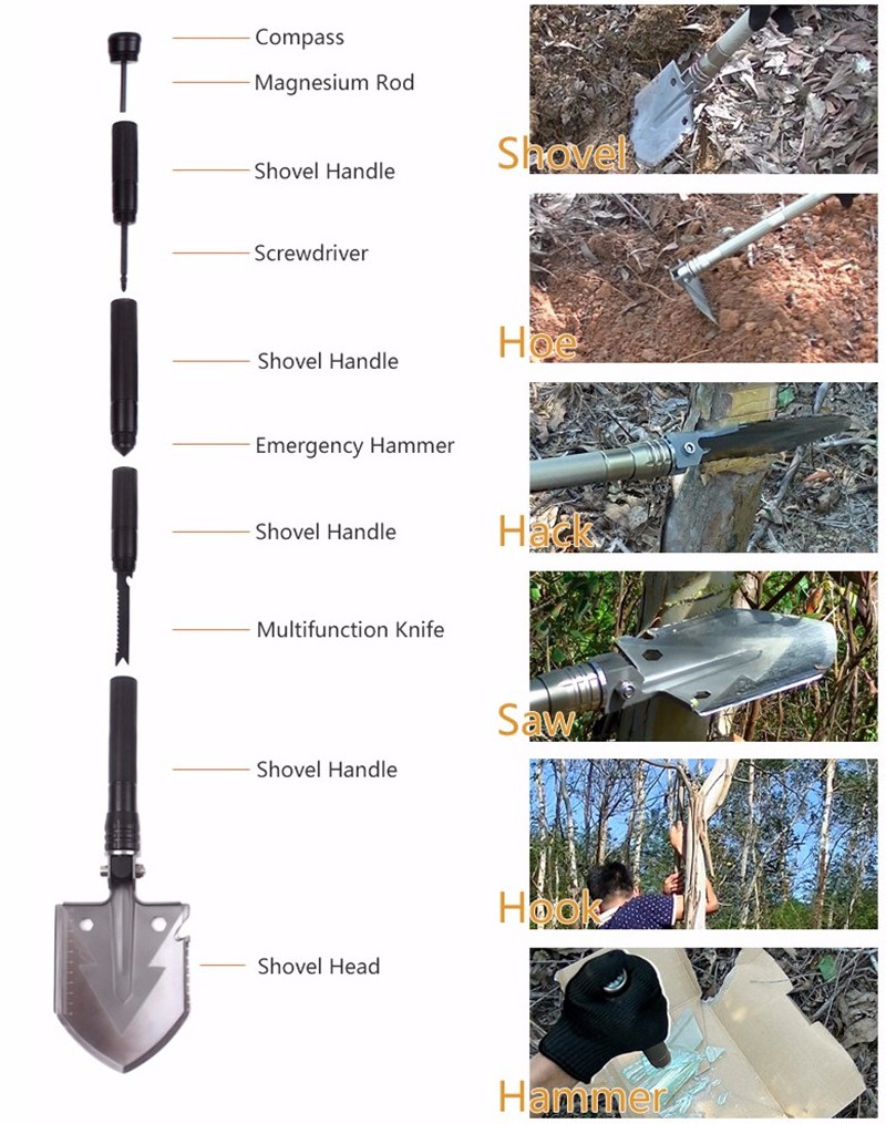 Многофункциональный инструмент, компас, отвертка, нож, лопата, открывалка для бутылок, веревка, резак, пила все в одном.