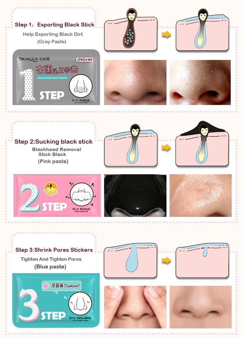 Большинство полосок и кремов от черных точек дают кратковременный эффект, поскольку они лишь удаляют загрязнения и не влияют на их повторное образование. Трехступенчатая система Bioaqua учитывает все особенности кожи и предполагает не только очищение, но и активный уход за вашим лицом. Все три средства, которые вы получите в наборе, содержат в своем составе питательные масла и экстракты растений. Они эффективно борются с проблемами кожи, улучшают ее состояние и внешний вид.