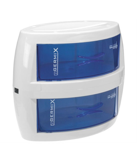 Ультрафиолетовый стерилизатор двухкамерный Germix используется для хранения маникюрных, педикюрных, косметологических, парикмахерских инструментов и их последующей стерилизации.