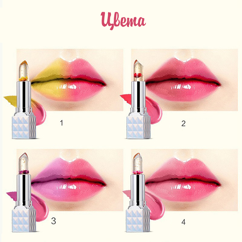 Увлажняющая помада-бальзам для губ меняющая оттенки с изящным цветком внутри.