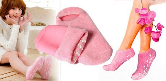 Долой пемзу! Лучше использовать безвредные средства, оздоравливающие кожу - увлажняющие силиконовые носки. Носки состоят из хлопка и эластичной пряжи. Внутренний слой носков очень мягкий и приятный, он пропитан особым гелем, который богат витамином Е и состоит из натуральных масел: масло жожоба, масло виноградных косточек, оливковое масло, масло лаванды и т.д.