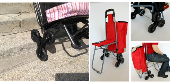 Когда вам нужна тележка, просто отстегните сумку. А если вы устали по дороге домой, откиньте стульчик и отдохните пару минут.