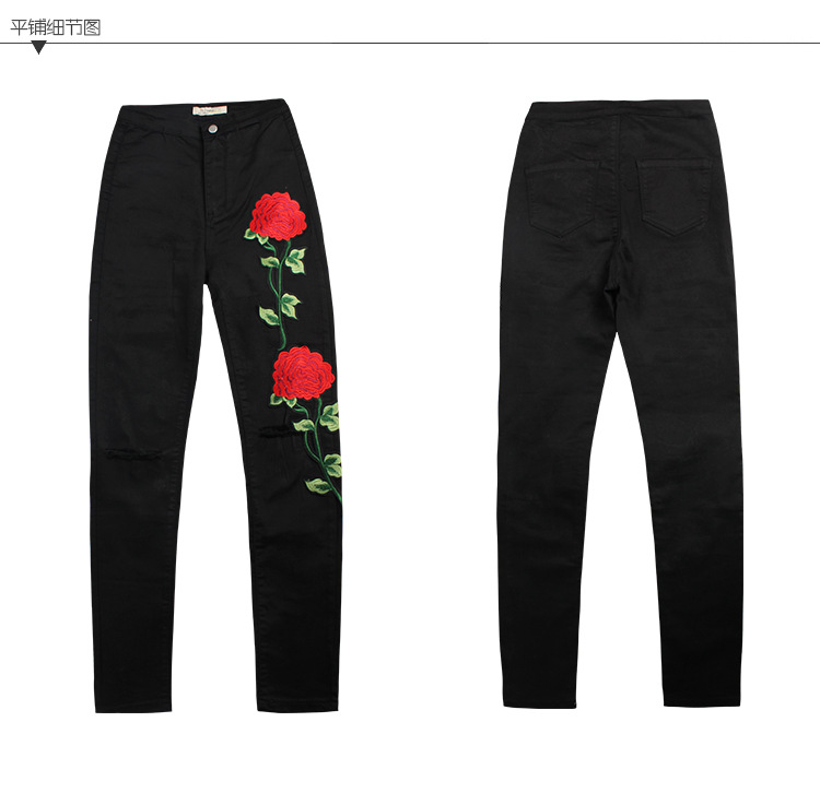 Узкие джинсовые леггинсы с яркой вышивкой и разрезом на колене. Самая подходящая одежда для лета.