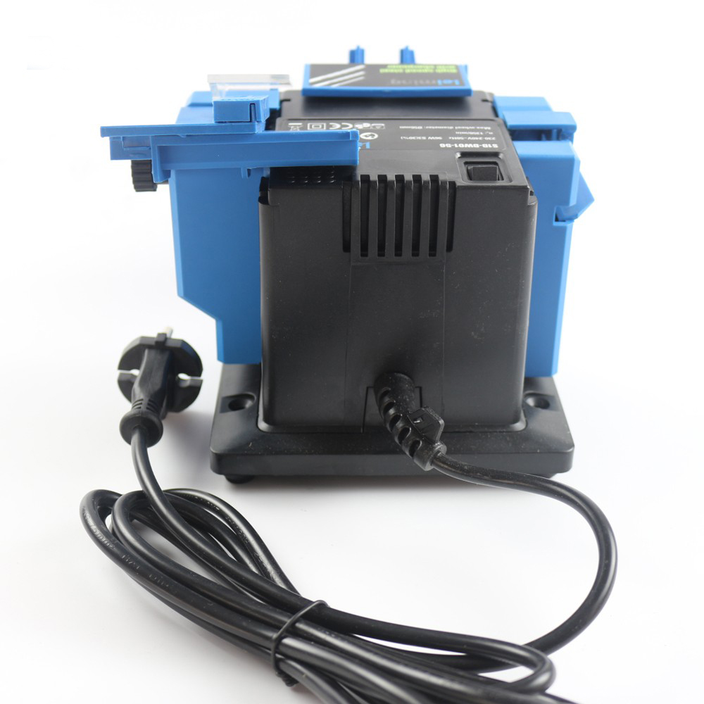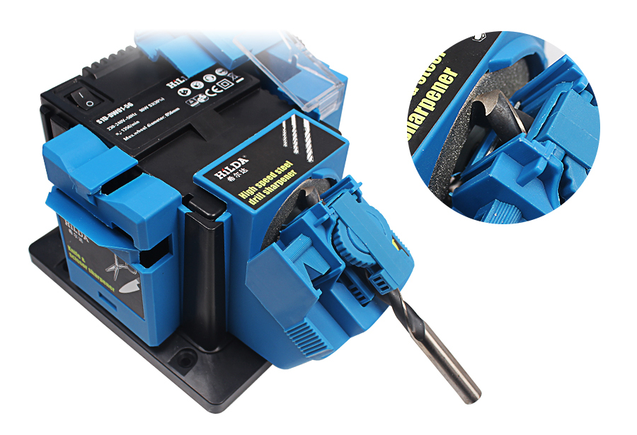 Универсальная портативная электрическая точилка применяется для заточки сверл диаметром от 3 до 13 мм, зубил, лезвий размером от 6 до 51 мм, а также ножей и ножниц. Диск диаметром 56 мм имеет напыление из материала карборунд, что обеспечивает его износостойкость. Модель проста и удобна в эксплуатации, не требует специального технического обслуживания. Защитный экран позволяет визуально контролировать выполнение операции, а также оберегает оператора от вылета искр. Наличие специальных отверстий в основании устройства позволяет крепить аппарат к поверхности.