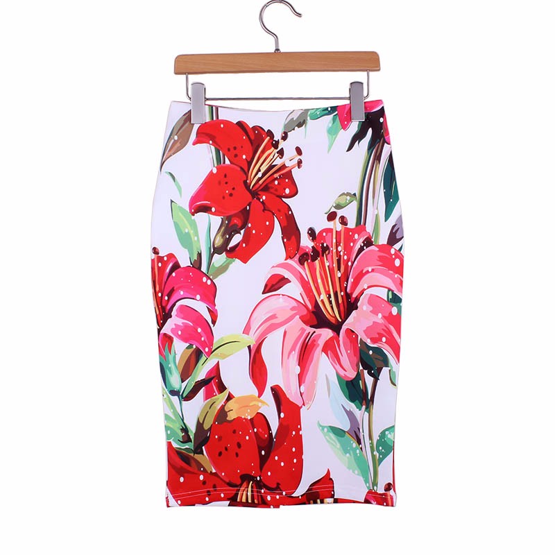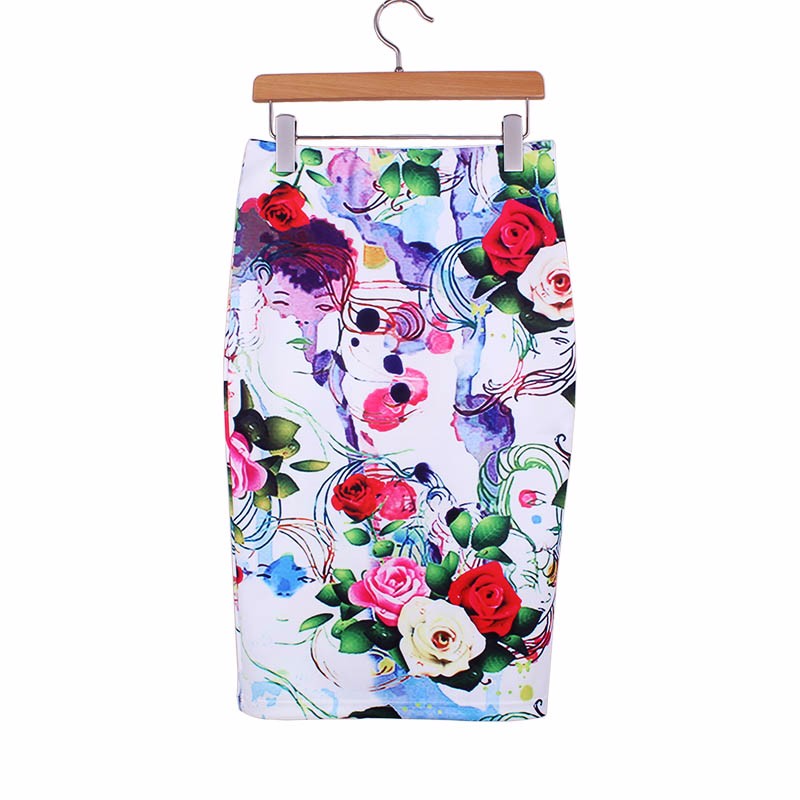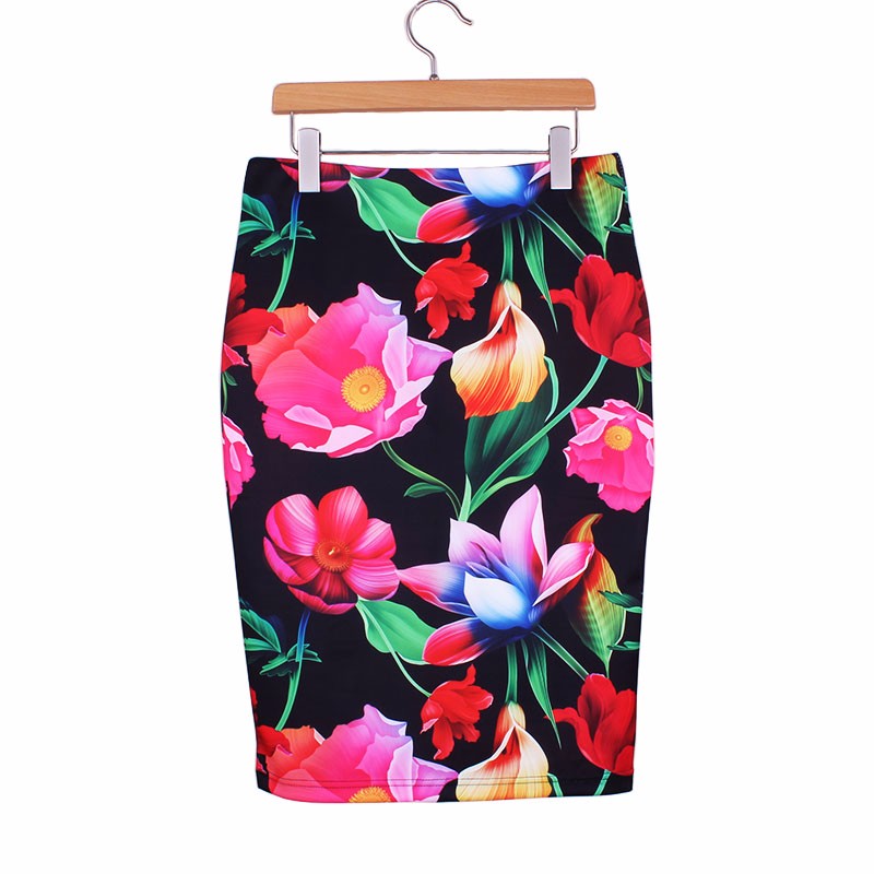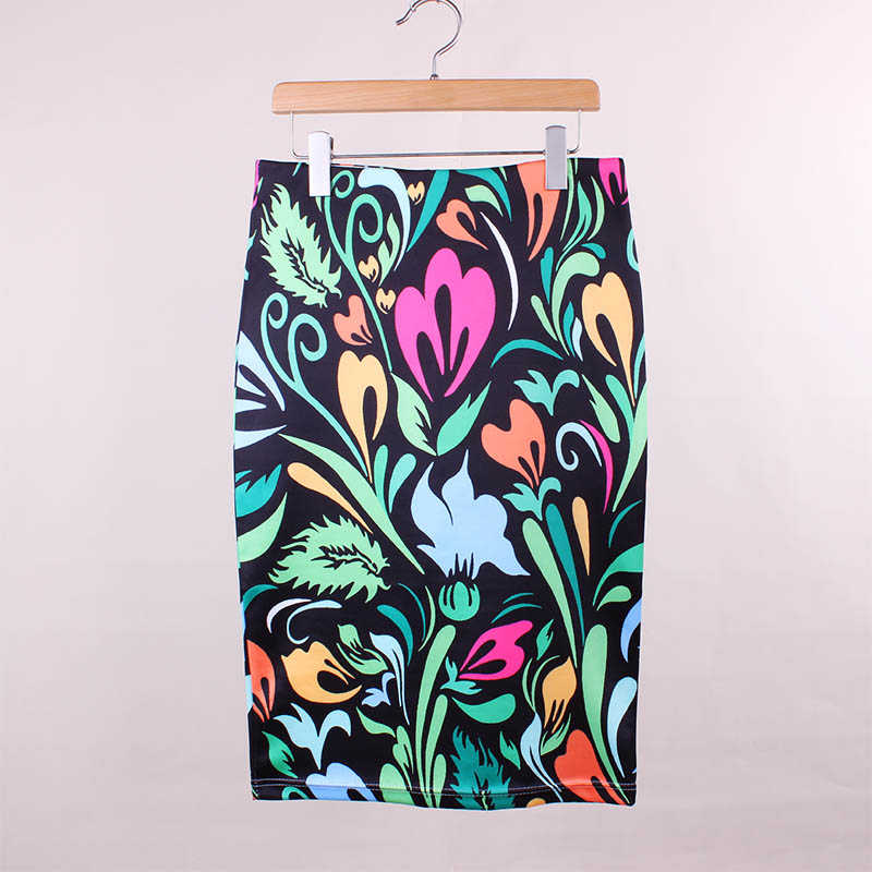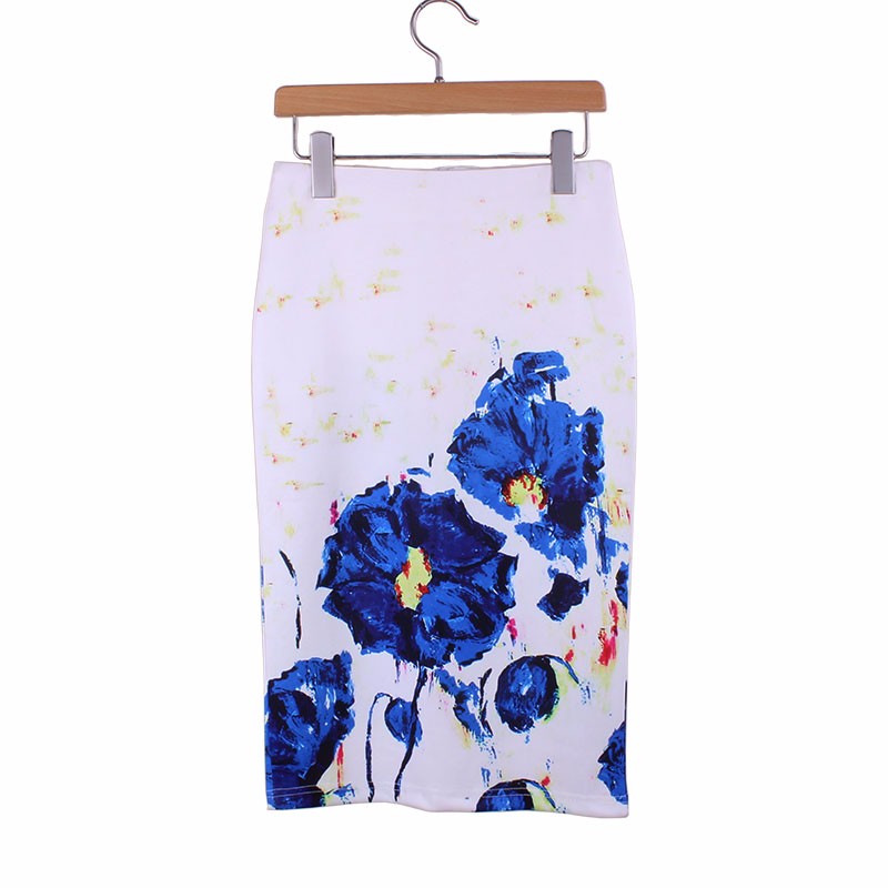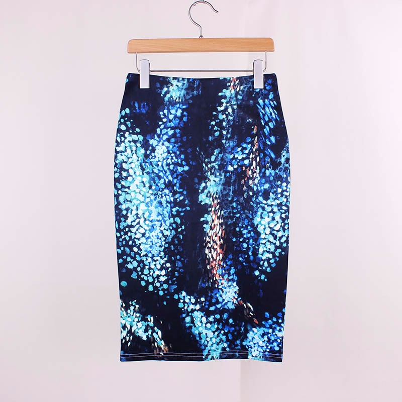Стильные яркие юбки карандаш с импрессионистической печатью.