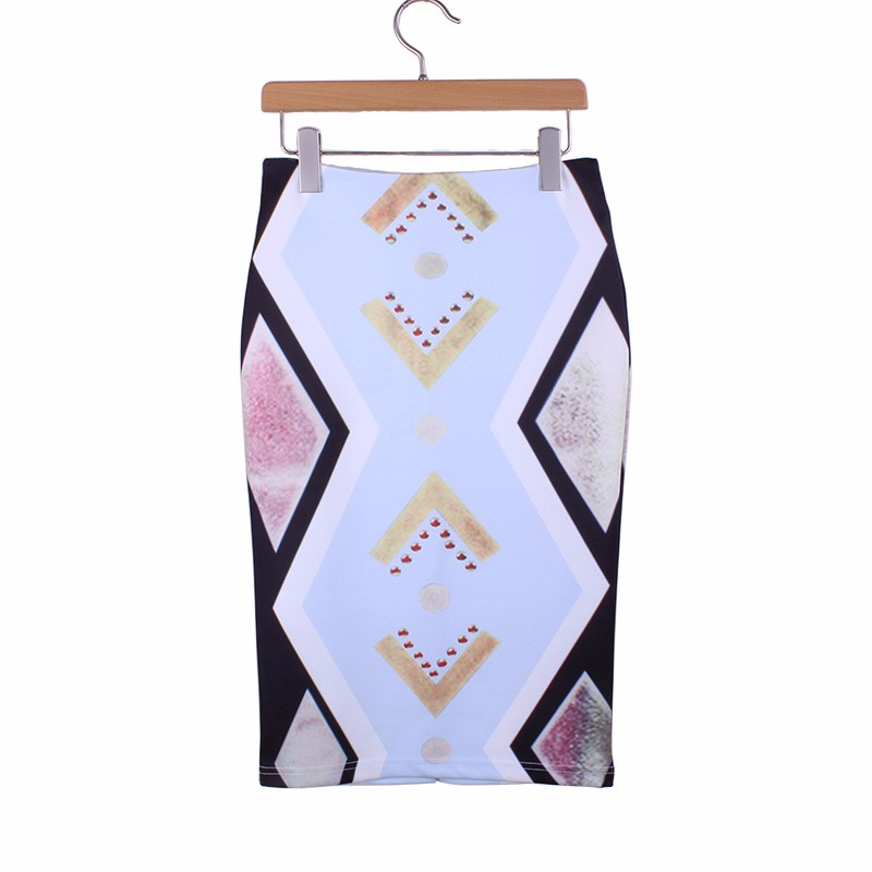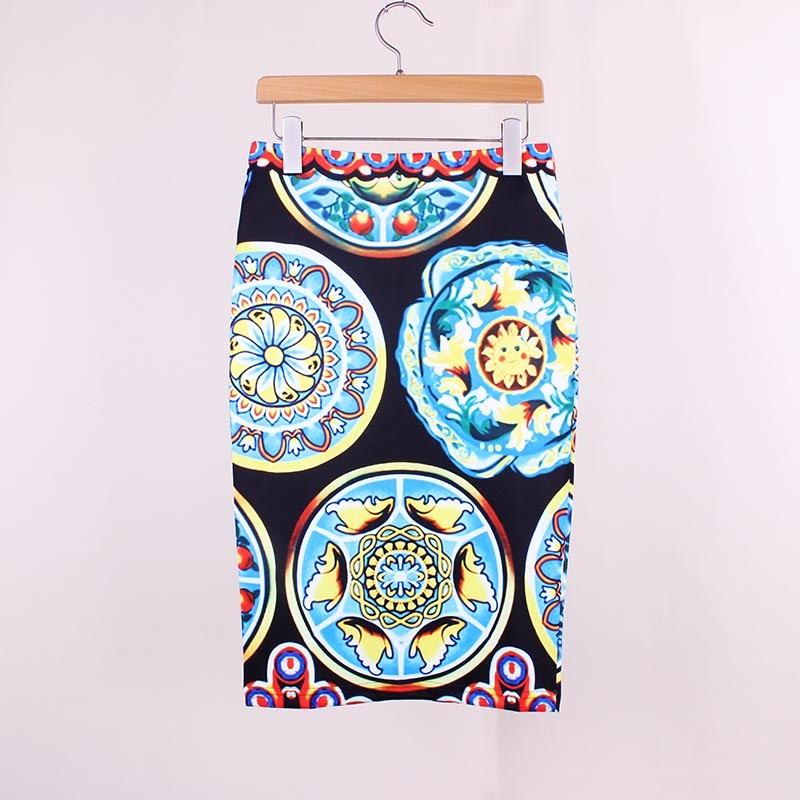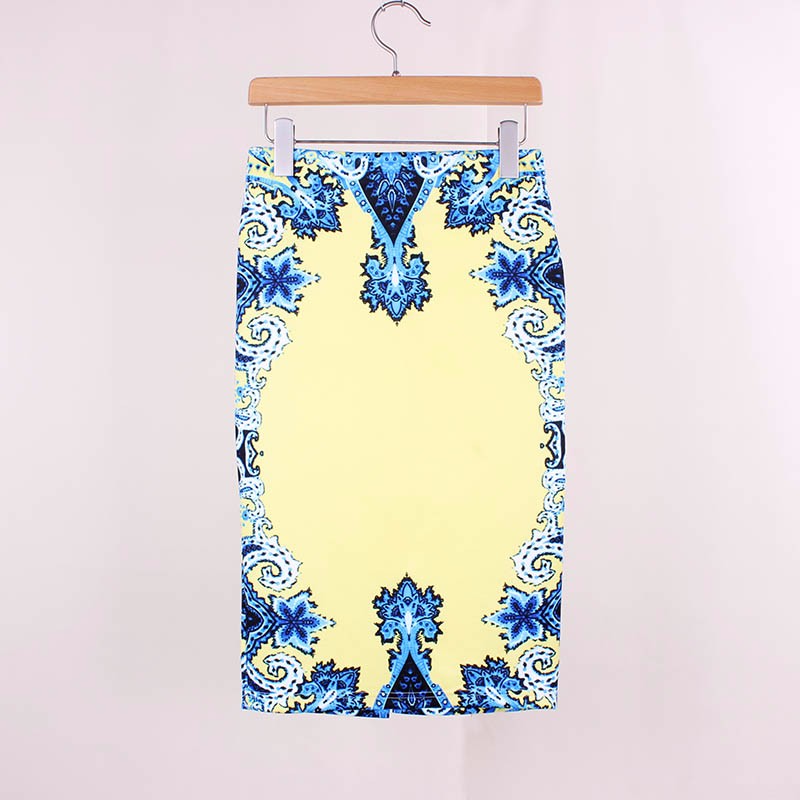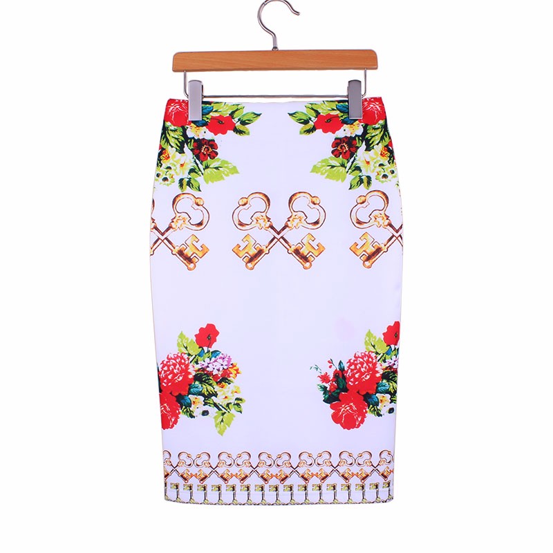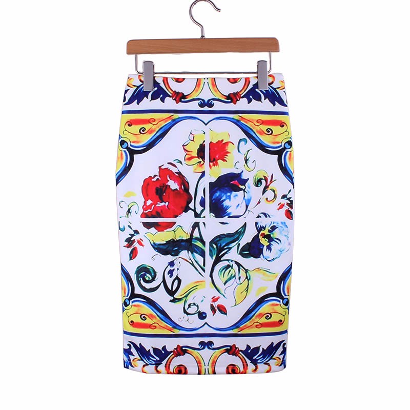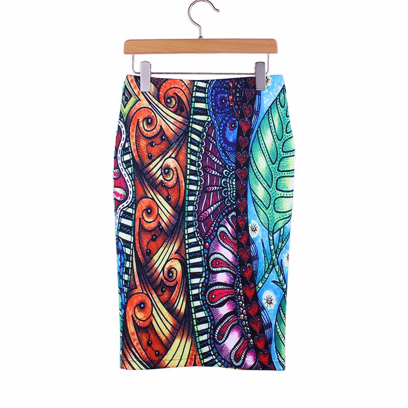 Стильные яркие юбки карандаш с импрессионистической печатью.