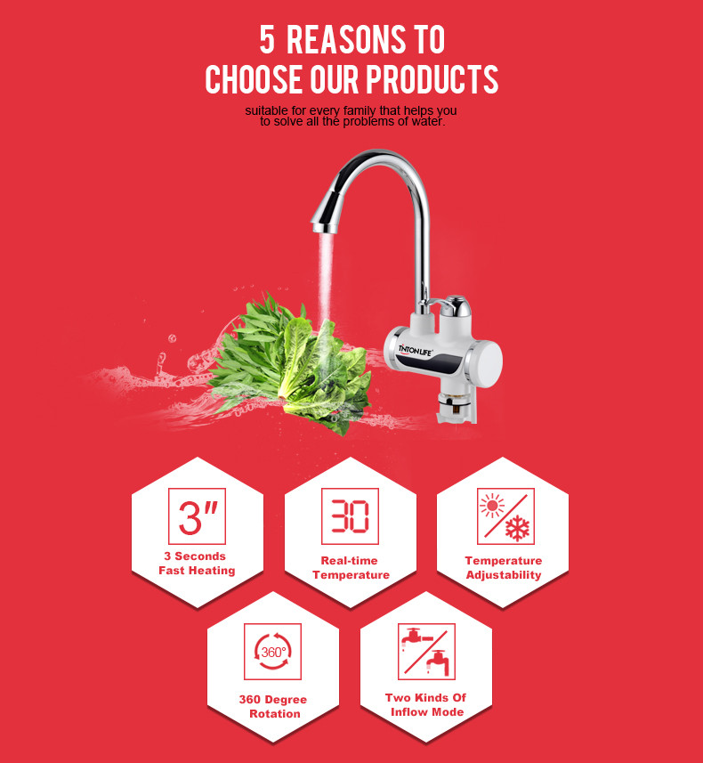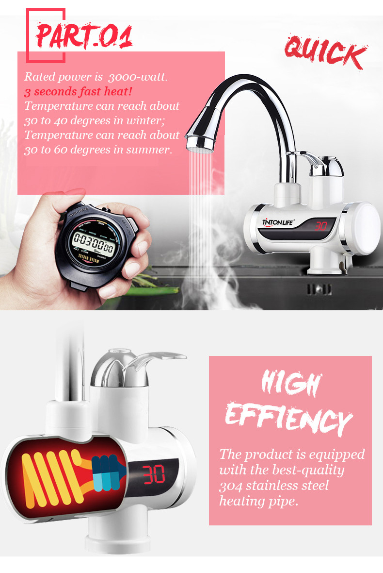 Удобный прибор, совмещающий в себе функции крана и водонагревателя, всего за 5 секунд доведет воду до 60 градусов. Быстрый подогрев с помощью проточного водонагревателя – это реальная альтернатива дорогому громоздкому бойлеру и мучительно медленному кипятильнику. К тому же во время быстрого нагрева воды практически отсутствуют потери тепла, что означает более низкие расходы электроэнергии на подогрев кубометра воды, чем при использовании других видов нагревательных приборов.