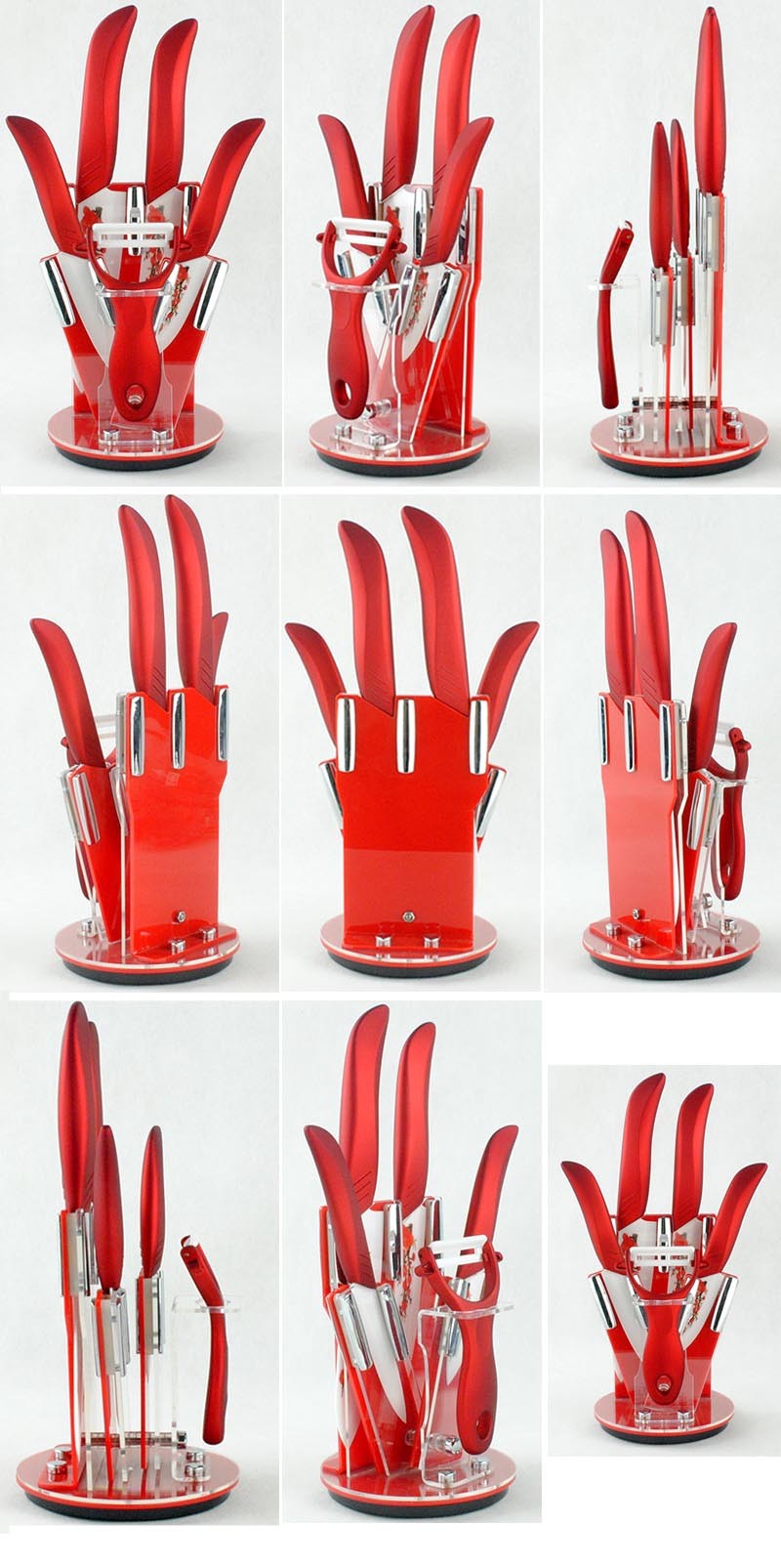 Набор ножей состоит из 4 кухонных ножей, ножа для чистки и подставки. Лезвия ножей выполнены из высококачественной керамики и декорированы цветочным орнаментом. Керамические ножи не подвергаются коррозии и не придают металлического привкуса или запаха, а также сохраняют свежесть продуктов. Режущая кромка лезвий устойчива к притуплению. Ножи высоко гигиеничны и легки в очистке.