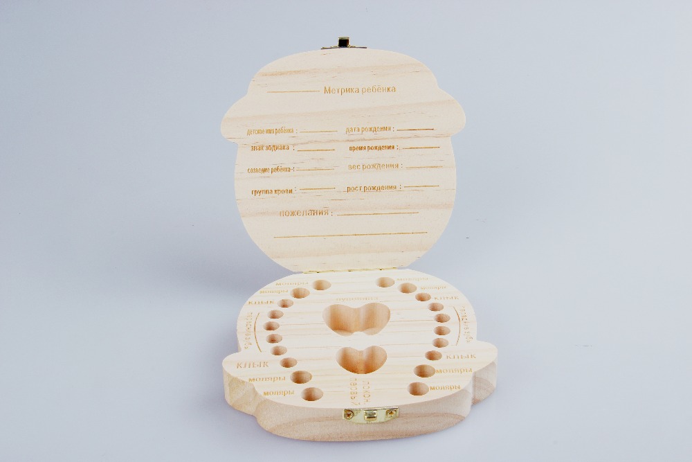 Интересная деревянная шкатулочка для каждого молочного зуба Вашего малыша. Необычная коробочка для хранения молочных зубов ‑ прекрасный подарочек вашему ребенку, который поможет избавить его от страха потерять свой зубик. Изготовлена она в виде счастливого малыша, который очаровывает деток. Мучительную смену зубов можно превратить в увлекательную игру, Вы можете придумать сказку о коробочке. Объясните ребенку, что маленькая фея будет охранять его зубки, тогда процесс не будет вызывать стах.