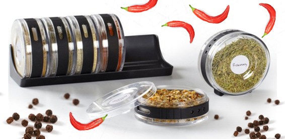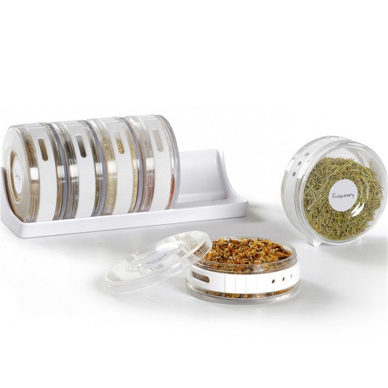 Наш набор идеально подходит для организации специй и трав. Он состоит из 6 прозрачных вращающихся баночек и подставки.