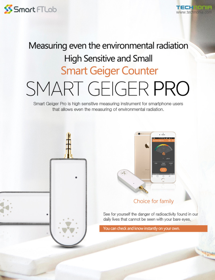 Мобильный счетчик Гейгера (измеритель уровня радиации) для мобильных устройств на iOS и Android (Корея). SMART GEIGER PRO - 100% защита всей семьи от радиации!