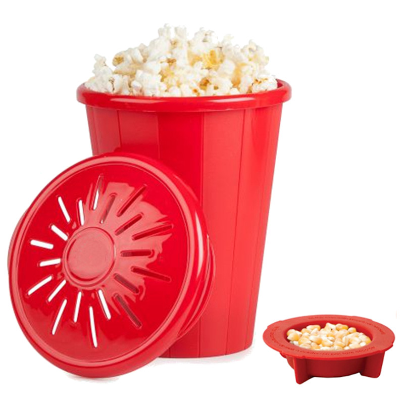 Сделать полезный попкорн Вы сможете своими руками. Для этого понадобится силиконовое ведро для попкорна. Просто насыпьте горсть кукурузных зерен на дно ведра, закройте крышку и поставьте в микроволновую печь на несколько минут.
