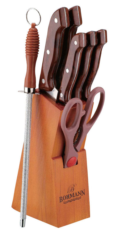 Лезвие ножей из нержавеющей стали толщиной от 1,2-1,5мм, высокая степень полировки поверхности стали для более долгой службы, удобная подставка- занимает мало мета на столе, но будет хорошим дополнением к любому дизайну кухни, можно мыть в посудомоечной машине