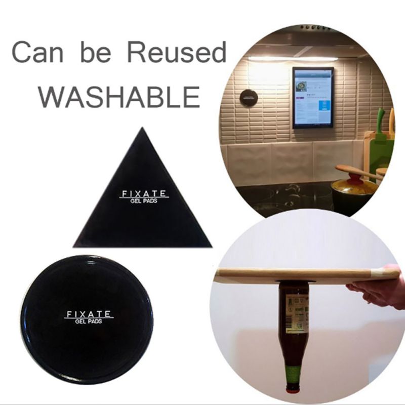 Теперь эта проблема решена. С помощью Fixate Gel Pads стало возможным в прямом смысле приклеить любой предмет к поверхности. Уникальность этих пластинок заключается в том, что они чрезвычайно прочные, но в тоже время тонкие и гибкие. Из них можно вырезать любой размер и форму, а уникальный состав позволяет их крепить к абсолютно любой поверхности. При этом они не оставляют следов клея на поверхности и их можно в любой момент легко отлепить. При этом они не теряют своих свойств.