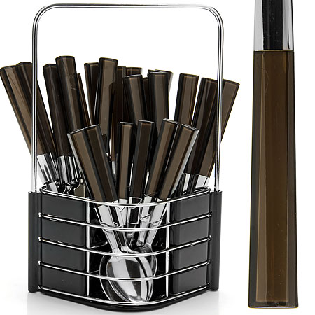 Набор столовых приборов MAYER&BOCH на 6 персон выполнен из прочной нержавеющей стали и цветного пластика. В набор входит 25 предметов: 6 столовых ножей, 6 столовых ложек, 6 столовых вилок и 6 чайных ложек и металлическая подставка. Приборы имеют удобные эргономичные пластиковые ручки. Прекрасное сочетание свежего дизайна и удобство использования предметов набора придется по душе каждому. Предметы набора расположены на подставке из стали и пластика с четырьмя отделениями для каждого вида приборов. Подставка оснащена удобной ручкой для переноски. Набор столовых приборов подойдет для сервировки стола, как дома, так и на даче и всегда будет важной частью трапезы, а также станет замечательным подарком. Подходит для мытья в посудомоечной машине.