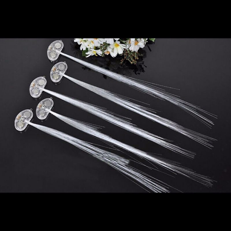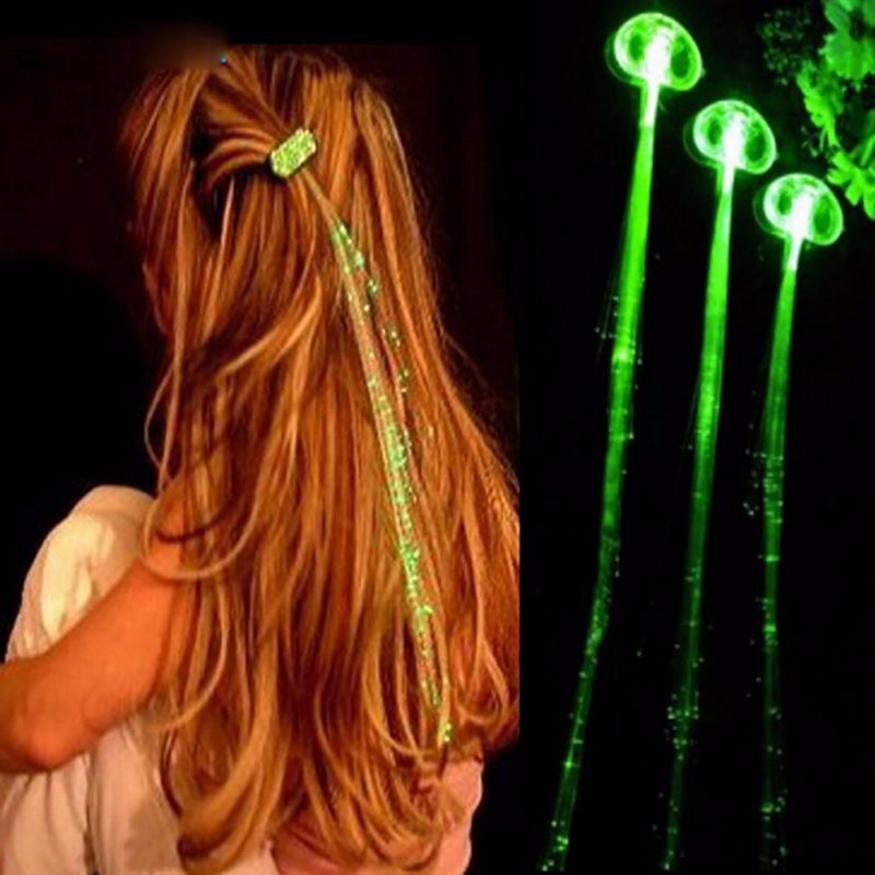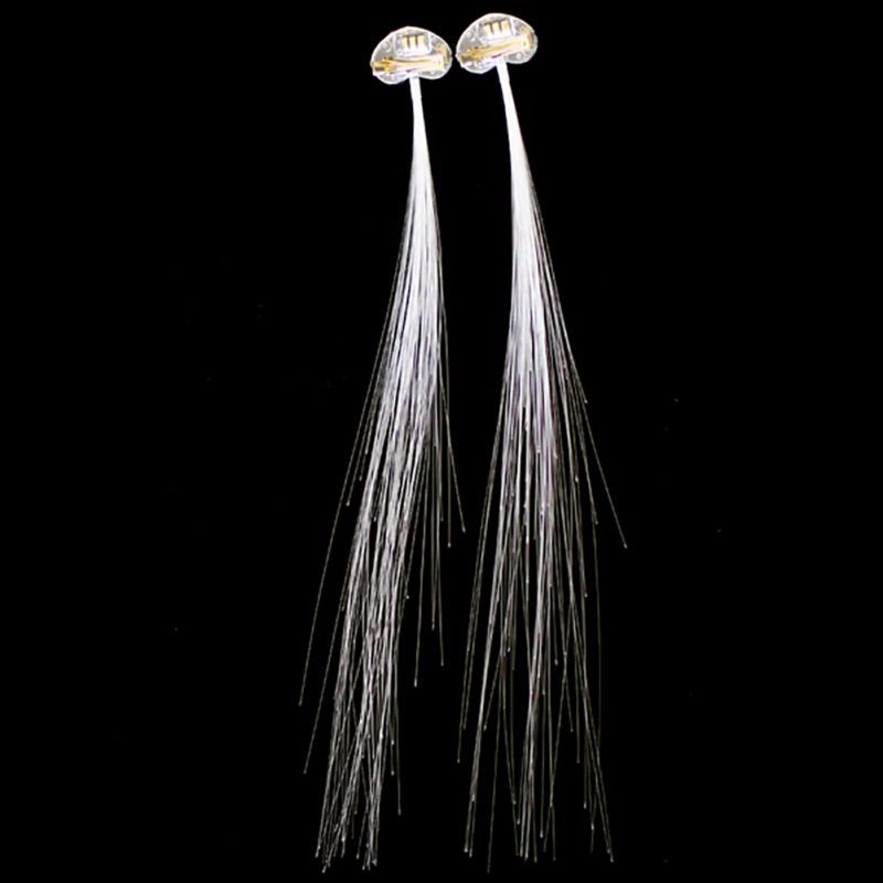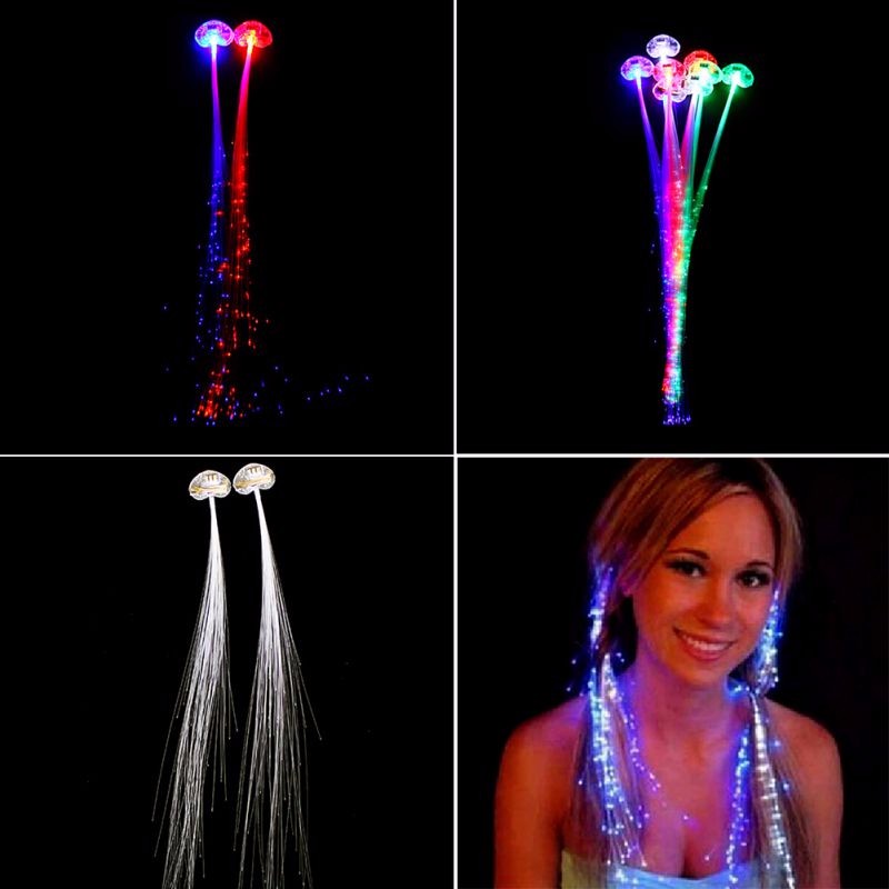 Светящиеся полупрозрачные пряди крепятся на собственные волосы с помощью небольших заколок-клипс. В основание пряди есть незаметная батарейка и переключатель для включения и отключения свечения пряди.