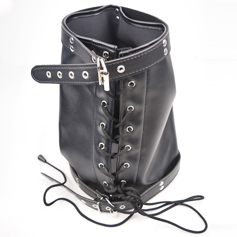 Широкий фиксатор для ног выполнен в брутальных черных тонах из искусственной кожи. Размер регулируется с помощью шнуровки и ремней. Такой фиксатор не позволит нижнему передвигаться, так как ноги жестко зафиксированы вместе.