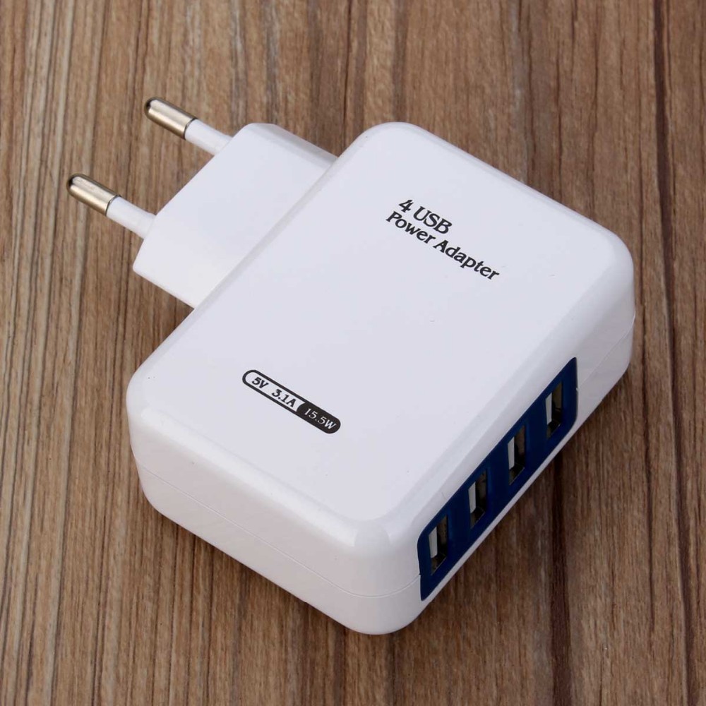 Мощное зарядное устройство имеет 4 порта USB для универсальной зарядки.