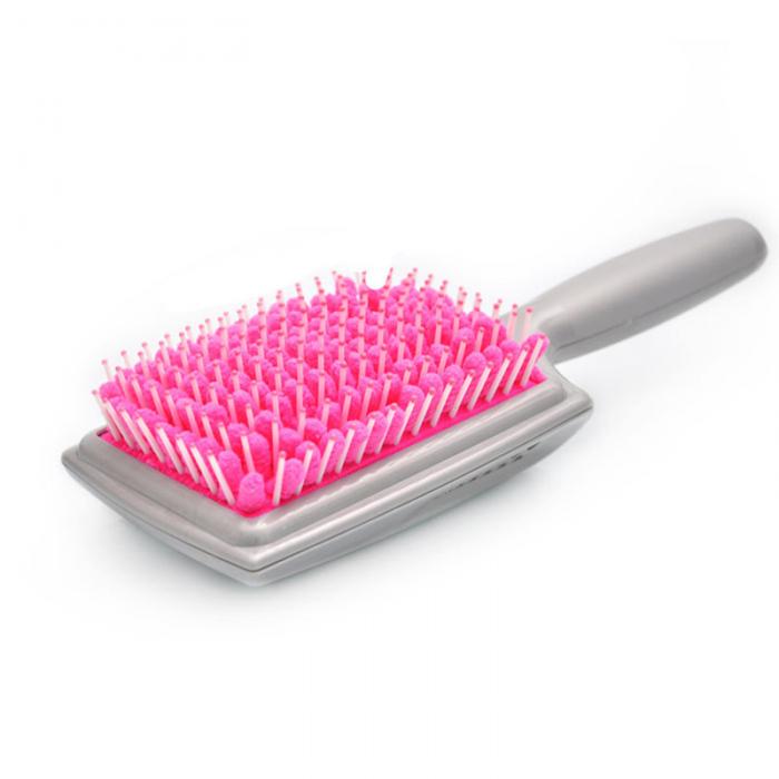 Щетка подходит обладательницам волос любого типа и длины. Не рекомендуется использовать щетку при воспалении и заболеваниях кожи головы. Послы мытья промокните волосы полотенцем, избегая растирания, и приступите к расчесыванию. Если расческа напиталась влаги и стала тяжелой, прижмите щетину ладонью: лишняя влага вытечет через отверстия. Чтобы просушить расческу, достаточно положить ее на несколько часов щетиной вверх в сухое, хорошо проветриваемое место, например, на подоконник.