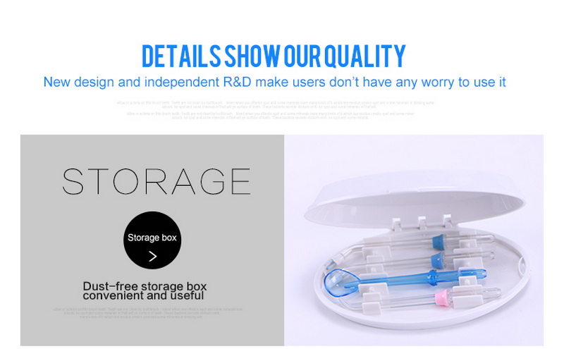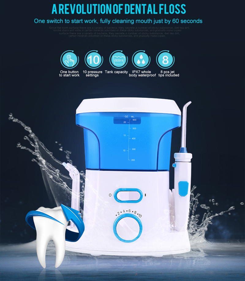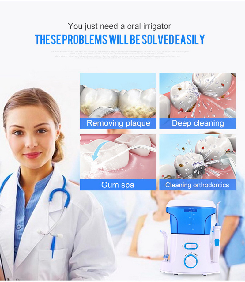 Струя воды подается под давлением в носик насадки, что позволяет направленно удалять болезнетворные бактерии и частицы пищи из самых труднодоступных мест во рту, также происходит удаление мягкого зубного налета и массируются десны, вследствие чего улучшается микроциркуляция крови, укрепляя их.