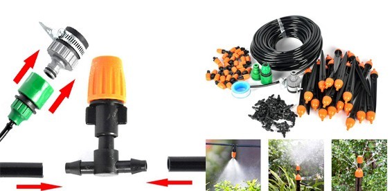 В систему в ходит, шланг 25 метров и внутренним диаметром 4мм из которого вы можете собрать, собственную, индивидуальную систему автоматического полива, обрезая его и с помощью фитингов 30 шт, тройников 30 шт и регулируемых капельниц 30 шт идущих в комплекте проектировать практически любую систему полива как капельного так и обычного орошения.