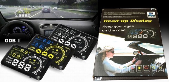 HUD проектор на лобовое стекло предназначен для предотвращения аварии,проецирует важную информацию на лобовое стекло на уровне глаз такую как: скорость,расход топлива,напряжение,дату,время,обороты двигателя,сигнал разрядки АКБ,пробег,время нахождения в пути,расход топлива на 100 км и другие параметры.