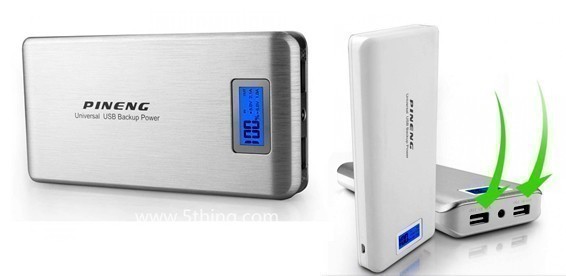Это мощный портативный аккумулятор в классическом дизайне для людей, которые дорожат своим временем и рационально относятся к своим приобретениям. Данная модель имеет повышенную емкость и очень привлекательную цену. Из особенностей можно отметить цифровой индикатор заряда с подсветкой, который является фирменным отличием производителя Pineng, а так же два USB входа, что позволяет заряжать два устройства одновременно. Так же из удобств можно отметить наличие светодиодного фонарика. Портативный аккумулятор имеет современную систему защиты от перезарядки, перепадов напряжения и полной саморазрядки