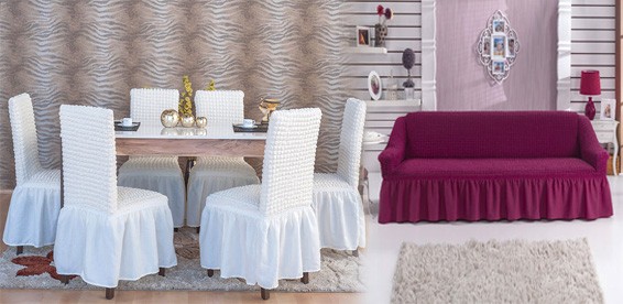 Универсальные чехлы на мебель. Состав: 50% полиэстер, 45% хлопок, 5% эластичная нить.