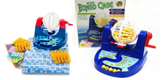 Настольная игра "Бинго лотерея" состоит из нескольких карточек прямоугольной формы, на которых изображены разные цифры. К ним прилагается небольшая установка в виде крутящегося шара, из которого и достаются пластмассовые шарики с номерами.