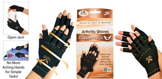 Артрит почти полностью лишает рук людей, страдающих этим возрастным заболеванием. Такие простые действия, как повернуть ручку двери, держать в руке нож или любой другой инструмент из домашнего хозяйства, не говоря уже об использовании его, становятся болезненными или просто невыполнимыми из-за потери подвижности в суставах. Компрессионный эффект перчаток Copper Hands в сочетании с лечебным влиянием маленьких медных дисков на них, позволяет во многом облегчить симптомы артрита и вернуть больных к нормальной жизни.