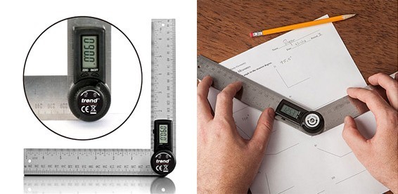 Угломер со встроенным электронным датчиком изготовлен из инструментальной стали, на которую с обеих сторон нанесена нестираемая шкала. Он плотно прилегает к поверхности, что очень удобно при проведении измерений и нанесении разметки.