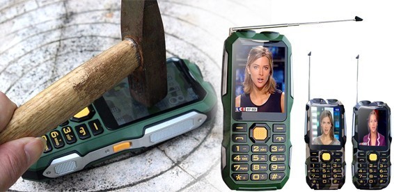 Встроенный FM,сильный фонарик, большие удобные кнопки , громкий динамик,аналоговое ТВ, GPRS, Калькулятор, Календарь, будильник, Камера, MP3/MP4.