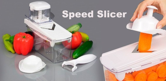 Терка Спид слайсер (Speed Slicer) поможет моментально нашинковать овощи и фрукты плоскими дольками или соломкой. Для безопасности рук в комплекте с теркой идут два специально разработанных держателя. С их помощью легко удерживать нарезаемые продукты, и позволяет удерживать длинные и тонкие овощи.