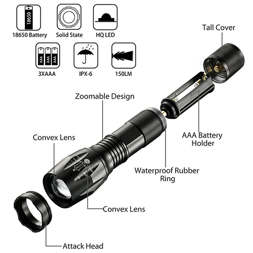 Мощный диодный фонарь с подвижной линзой. Легкий водонепроницаемый корпус изготовлен из прочного сплава алюминия. Работает от 3-х батареек ААА (мизинчиковых). С помощью подвижной линзы плавно меняется диаметр 5 метрового светового луча. Максимальное увеличение диметра в 200 раз.